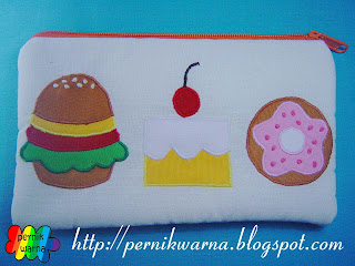 Ada dompet model baru nih.. Dompet belacu dengan aplikasi perca. Dompet ini terbuat dari kain belacu yang dilapisi busa dan kain pelapis dan juga diaplikasikan dengan aplikasi perca berbentuk makanan dan minuman. Mana tau aja kalo lagi laper ato haus, habis ngeliat dompet ini, dapat mengurangi rasa haus dan laper (kayaknya ga mungkin juga kali yaa...)